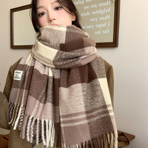 美拉德咖色格子围巾女秋冬季新款韩版加厚保暖高级感穿搭围脖披肩