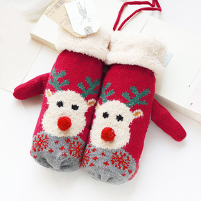 手套女冬季可爱保暖加厚棉毛线针织防寒红色学生挂脖情侣圣诞礼物
