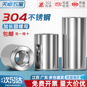 304不锈钢加长厚高圆螺母通丝连接螺帽柱丝杆接头焊接高压螺丝帽