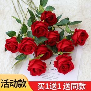 仿真玫瑰花情人节塑料花束家居摆件假花客厅餐桌插花干花摆设装饰
