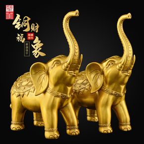 黄铜大象摆件一对铜象招客厅玄关财吸水象铜制大号鼻子朝天铜大象