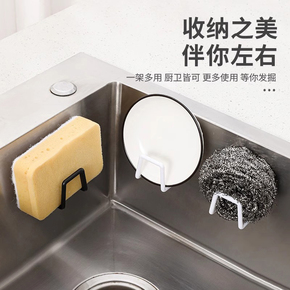 不锈钢海绵沥水架免打孔家用厨房水槽钢丝球收纳壁挂百洁布置物架