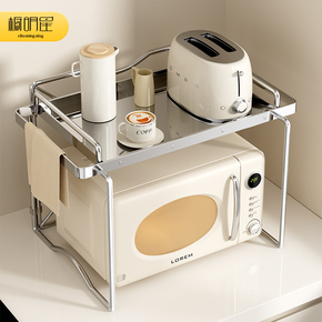 厨房微波炉置物架家用多功能台面不锈钢双层电饭煲烤箱桌面收纳架