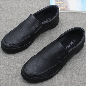 新款低帮一脚蹬休闲男皮鞋秋季简约百搭套脚男鞋黑色商务工作鞋子