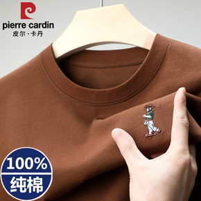 皮尔卡丹品牌100%纯棉短袖T恤男士圆领薄款宽松休闲全棉半袖夏装