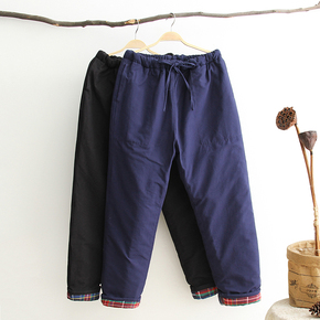 冬季纯棉粗布夹棉男士加厚保暖唐装棉裤宽松中老年休闲裤高腰外穿