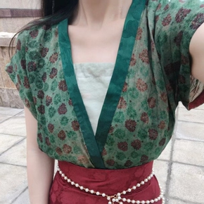 猫DY2578樱美嘉100桑蚕丝真丝花萝香云纱斜襟盘扣落肩袖短袖衬衫