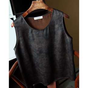 丝艺重缎非遗香云纱烫金真丝背心女圆领100%桑蚕丝无袖宽松上衣夏
