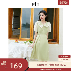 PIT法式甜美拼接连衣裙女夏装新款短袖茶歇裙小个子初恋裙子