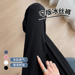 冰丝奶芙山本裤女夏季薄款小个子宽松直筒高腰垂感白色休闲阔腿裤