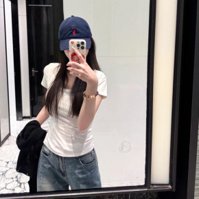 基础款简约纯色U领正肩短款T恤女夏季修身显瘦纯欲辣妹短款上衣潮