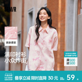 森马大力水手联名中袖衬衫女中长款设计感夏宽松满印衬衣炸街甜酷