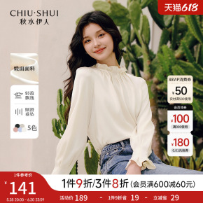 秋水伊人立领衬衫女2025春季新款通勤气质纯色高级法式雪纺衫上衣