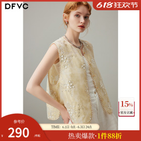 dfvc新中式国风薄款马甲女2025年夏季新款重工亮片刺绣背心外套