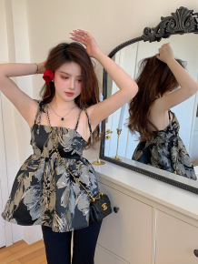 设计感小众蝴蝶结系带蓬蓬吊带上衣洋气外穿小背心女夏季2024新款