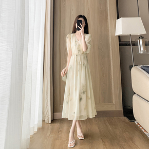 高级感碎花雪纺连衣裙女夏季2025新款收腰显瘦气质遮肚a字裙子仙
