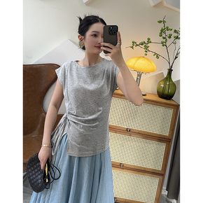 MISS RUILI 定制 2025夏季设计感圆领系带褶皱无袖T恤F