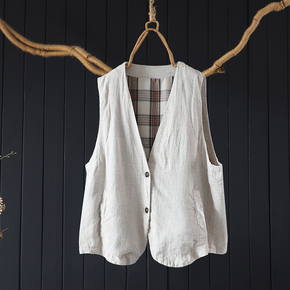 文艺宽松V领无袖马夹外搭女2024年秋燕尾摆双层开衫做旧亚麻马甲