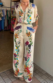澳洲ALEM*IS春夏新款休闲宽松涂鸦印花真丝衬衫+高腰阔腿裤长裤女