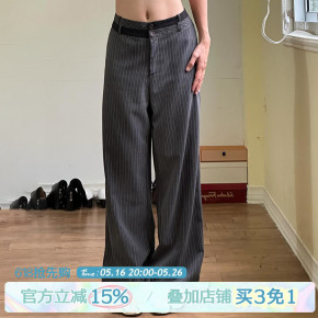 ROCKMORE【职场女妖】条纹撞色腰头显瘦休闲裤气质简约灰色西装裤