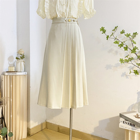 半身裙女春夏中长复古高腰a字中式国风盘扣百褶裙显瘦气质西装裙