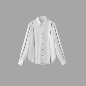 大洪严选店香榭大道黑白条纹撞色长袖衬衫女秋季新款通勤气质衬衣
