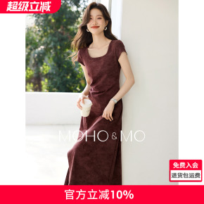 沫晗依美休闲U领褶皱侧开叉显白T恤裙2025夏季新款设计感连衣裙女