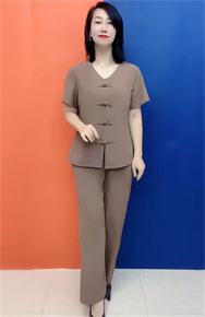 中老年盘扣复古套装女宽松遮肚显瘦清凉透气百搭休闲气质两件套女