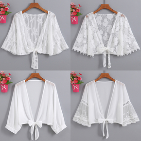 新款披肩夏季配吊带配裙子的雪纺衫系带百搭镂空透气外搭小披肩