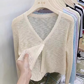针织冰丝开衫短款长袖夏季春秋外搭空调衫防晒衣小披肩上衣女罩衫