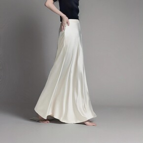 重磅进口三醋酸缎面凉感鎏光垂感半裙高腰斜裁加长拖地显瘦半身裙