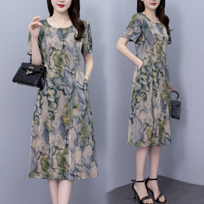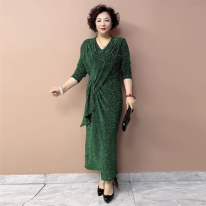 高端洋气时尚连衣裙中年妈妈璀璨星河弹力显瘦加肥200斤大码长裙
