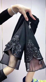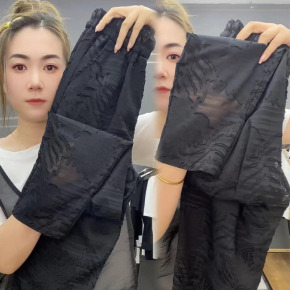 蕾丝提花夏季薄款九分裤百搭高腰纯色空调裤防走光内衬显瘦休闲裤