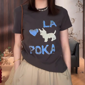 卡通小狗字母印花短袖T恤女2025夏季新款韩版减龄百搭显瘦上衣ins