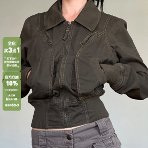 WEEKEEP 街头复古翻领拉链开衫夹克女2024秋季帅气收腰百搭短外