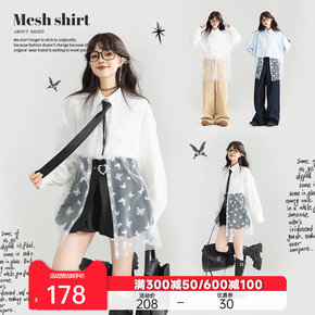 KEIKO [刺绣蝴蝶纱] 拼接白色长袖衬衫25春夏法式别致泡泡袖上衣