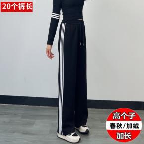 加长休闲阔腿裤女秋冬加绒175高个子高腰三条杠显瘦拖地运动裤子