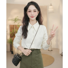 茵曼冬季田园复古尖领门筒刺绣百搭宽松长袖衬衫衬衣