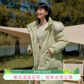 波司登中长连帽女款宽松长款狐狸毛领时尚廓形时尚羽绒服