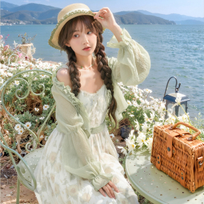 森女部落原创田园初恋感小清新碎花连衣裙收腰吊带裙两件套春夏款