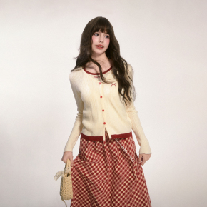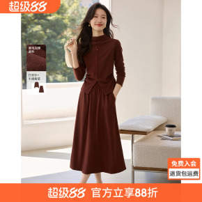 沫晗依美磨毛加厚盘扣设计打底衫半身裙两件套25冬季新款时尚套装