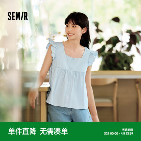 森马短袖衬衫女短款修身方领温柔2024夏季新款纯棉小飞袖衬衣可爱