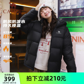 Camel骆驼拒水羽绒服秋冬季新款户外女士短款白鸭绒连帽厚面包服