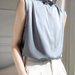 荷叶领花边无袖衬衫半高领醋酸宽松女25春季内搭百搭叠穿神器上衣