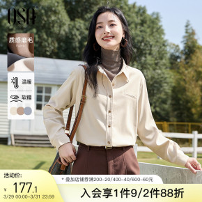 OSA欧莎宽松显瘦长袖磨毛衬衫女2025年春季新款法式气质衬衣上衣