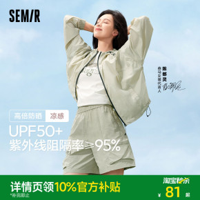 森马外套女抽绳宽松连帽质感夹克女生百搭夏季凉感防晒衣户外温柔