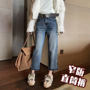 2025春季新款蓝色牛仔直筒裤女高腰显瘦阔腿九分小个子窄版法棍裤
