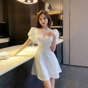 夜店连衣裙性感工作服显瘦方领泡泡袖a字短裙气质小礼服平时可穿