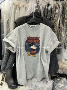 MH家 2024秋冬新款卡通米奇印花短袖t恤女加厚磨毛宽松百搭上衣