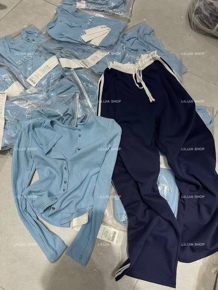 沫晗依美复古仿牛仔衬衫裤子套装2024春季新款休闲炸街时髦感套装